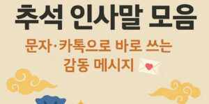 2025년 추석 인사말 모음 문자 카톡으로 바로 쓰는 감동 메시지 2025년 추석이 어느새 성큼 다가왔어요🌕 가족과 지인에게 따뜻한 마음을 전할 인사말을 준비해 보셨나요? 마음을 담은 한 줄의 메시지가 소중한 사람의 …